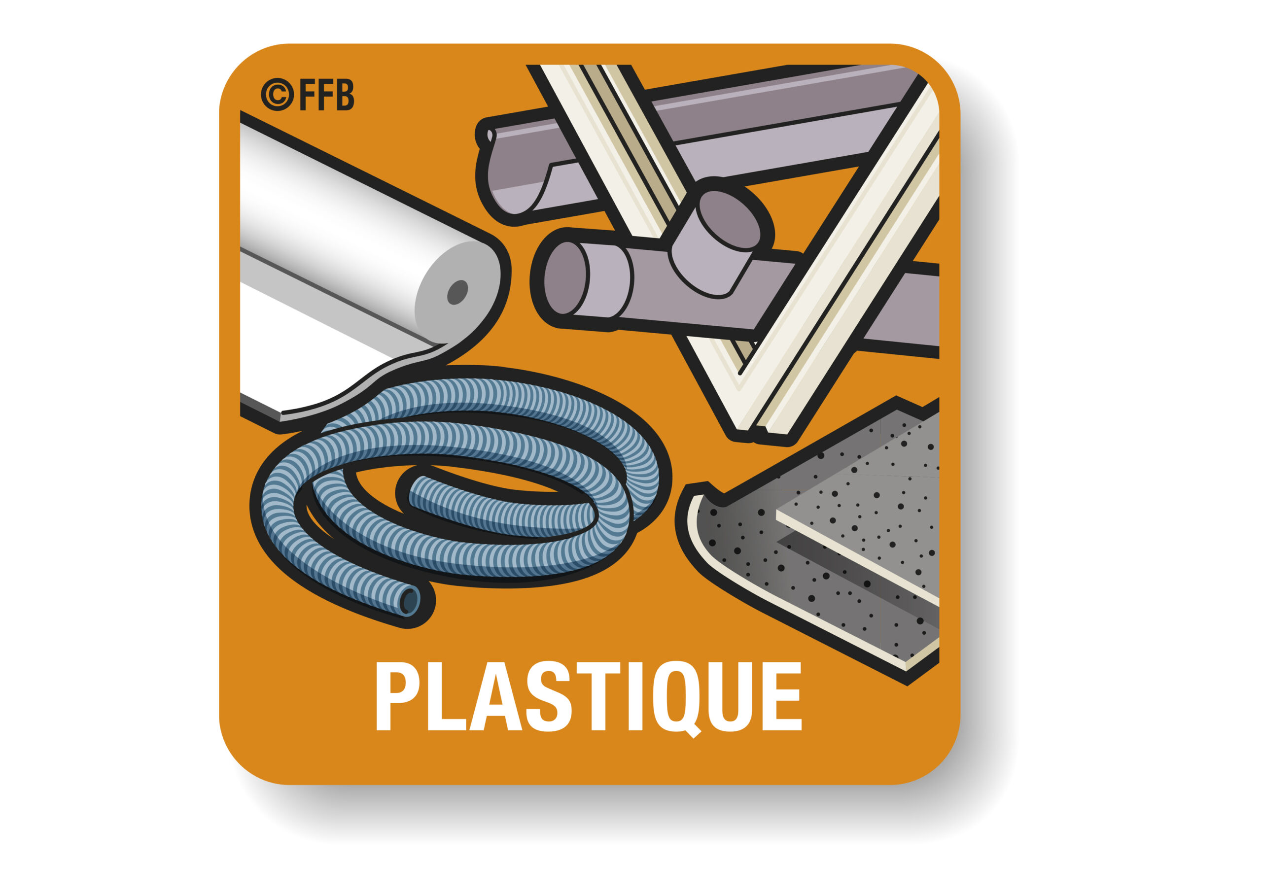 Exemples de déchets de chantier non dangereux : bois, palettes, métaux, plastiques (PVC, tubes, raccords, profilés, revêtements de sol souples…), chutes de plâtre, plaques de plâtre, isolants (laines minérales, laine de verre ou de roche), polystyrène, pots de peinture aqueuse, cartouches de mastic et de colle non dangereuses, fenêtres, moquette et revêtement de sol textile, ameublement, terre végétale, déchets verts, emballages, équipements de protection individuelle non souillés par des produits dangereux (EPI : casque, gants, lunettes…), etc.